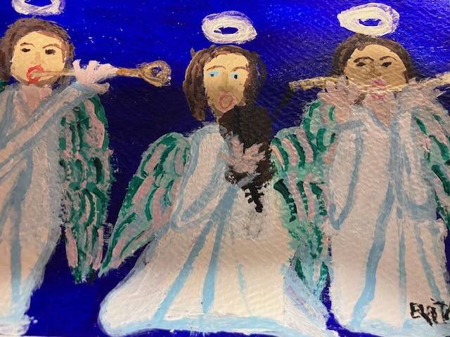 “Angels Gathering” | 16 x 20 Acrylic on stretched canvas (Order AAC 24 | $50 + shipping)
